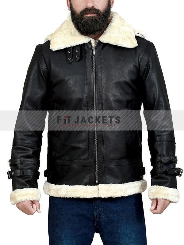 Men's Flying Sheepskin Black Shearling Leather Jacket