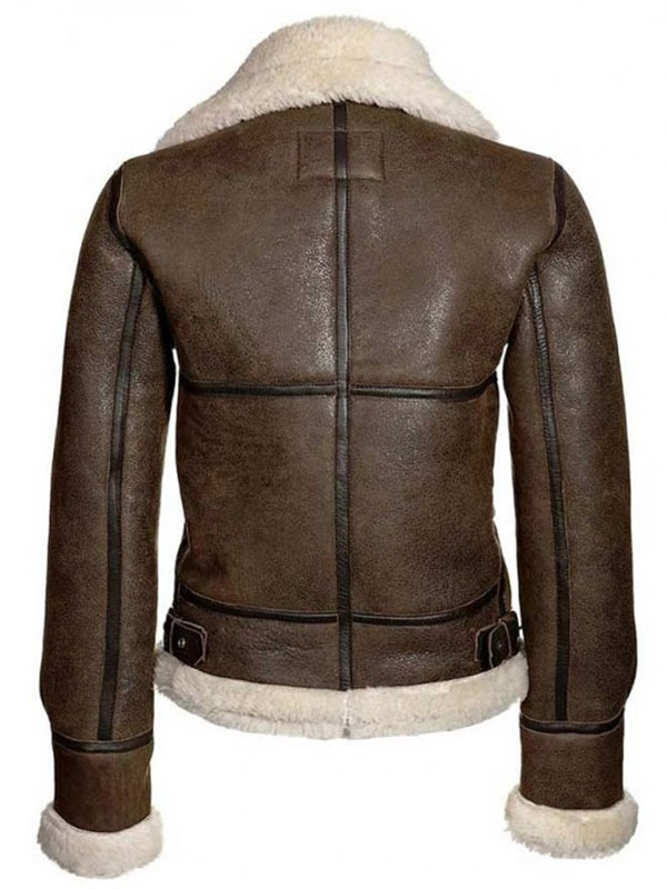 RAF Brown Shearling Leather Aviator Double Breasted Jacket