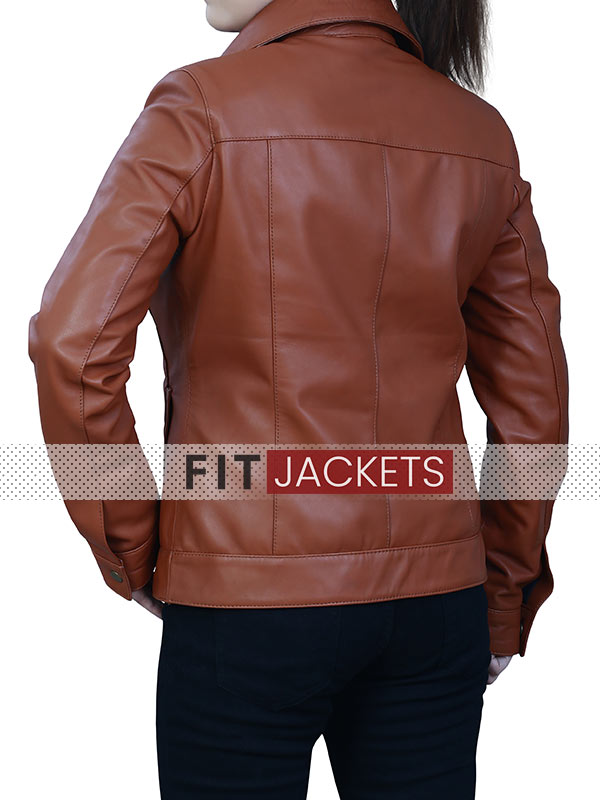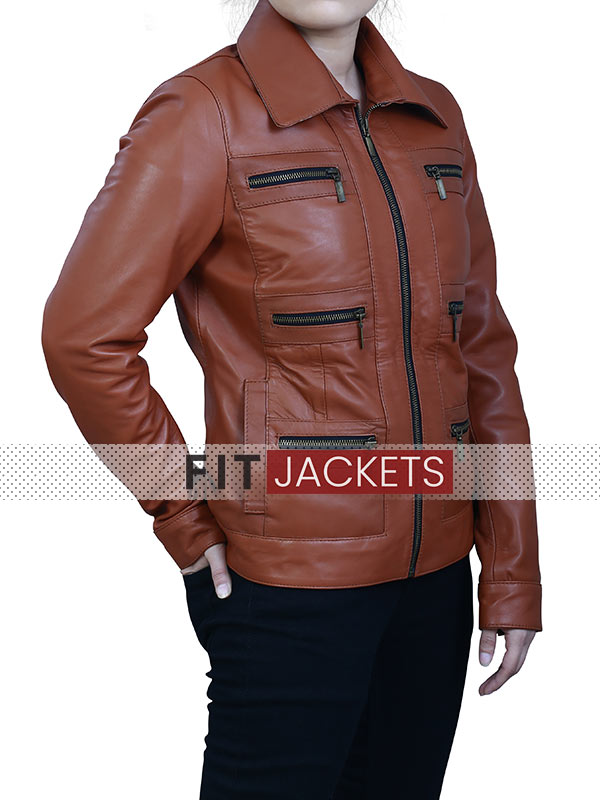 Womens Brown Zip Up Leather Jacket